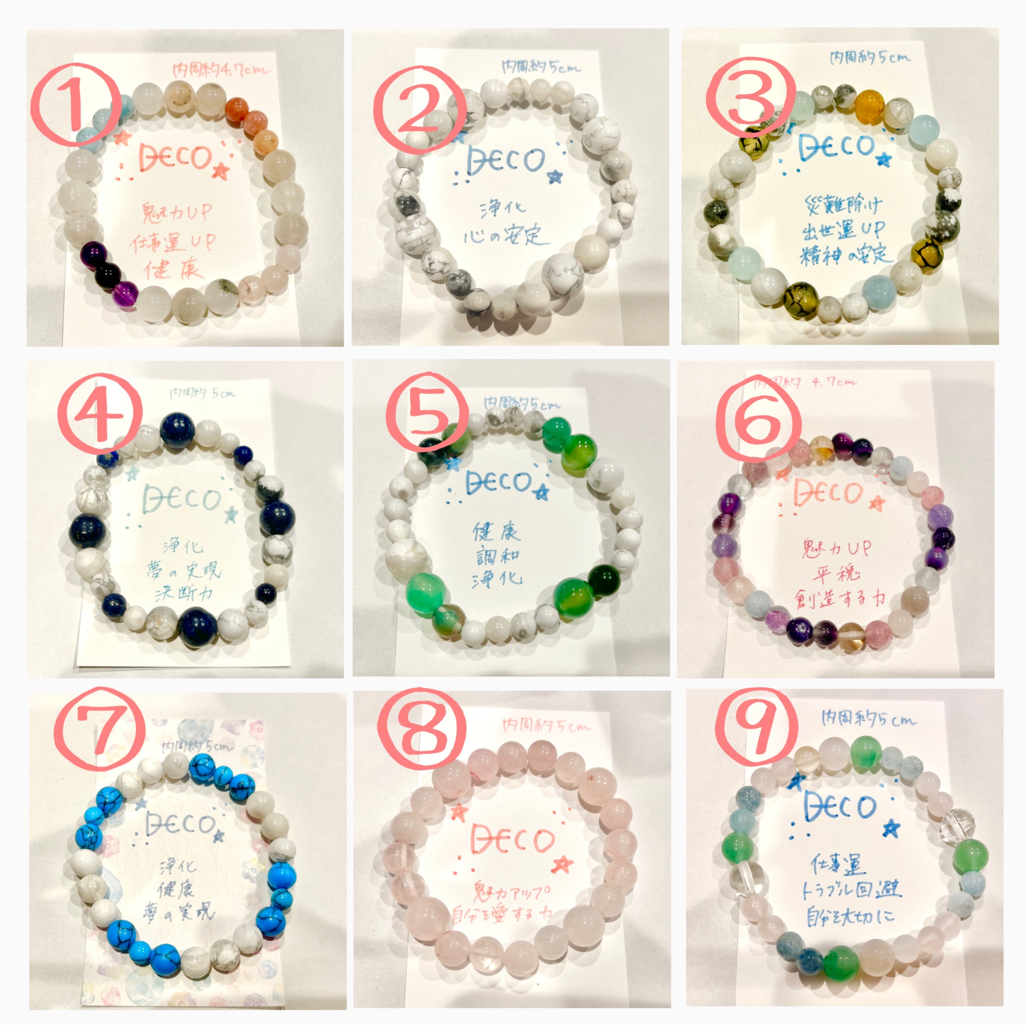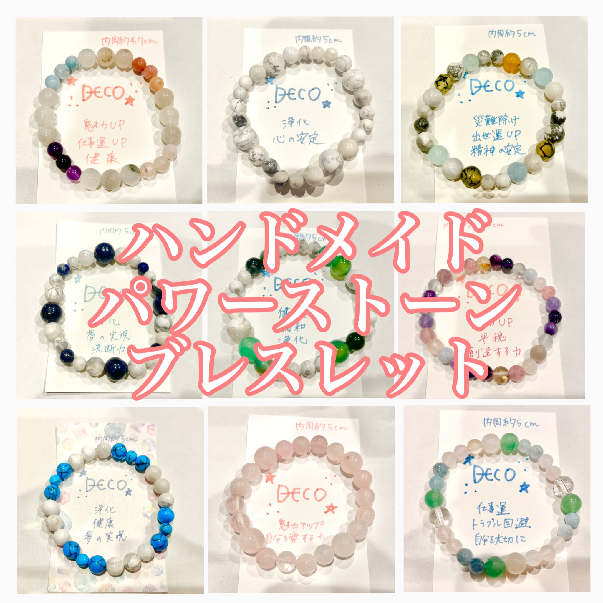 それぞれのブレスレットに込めた想いや、石の効果などを記載していますので、参考にしてくださいね♪