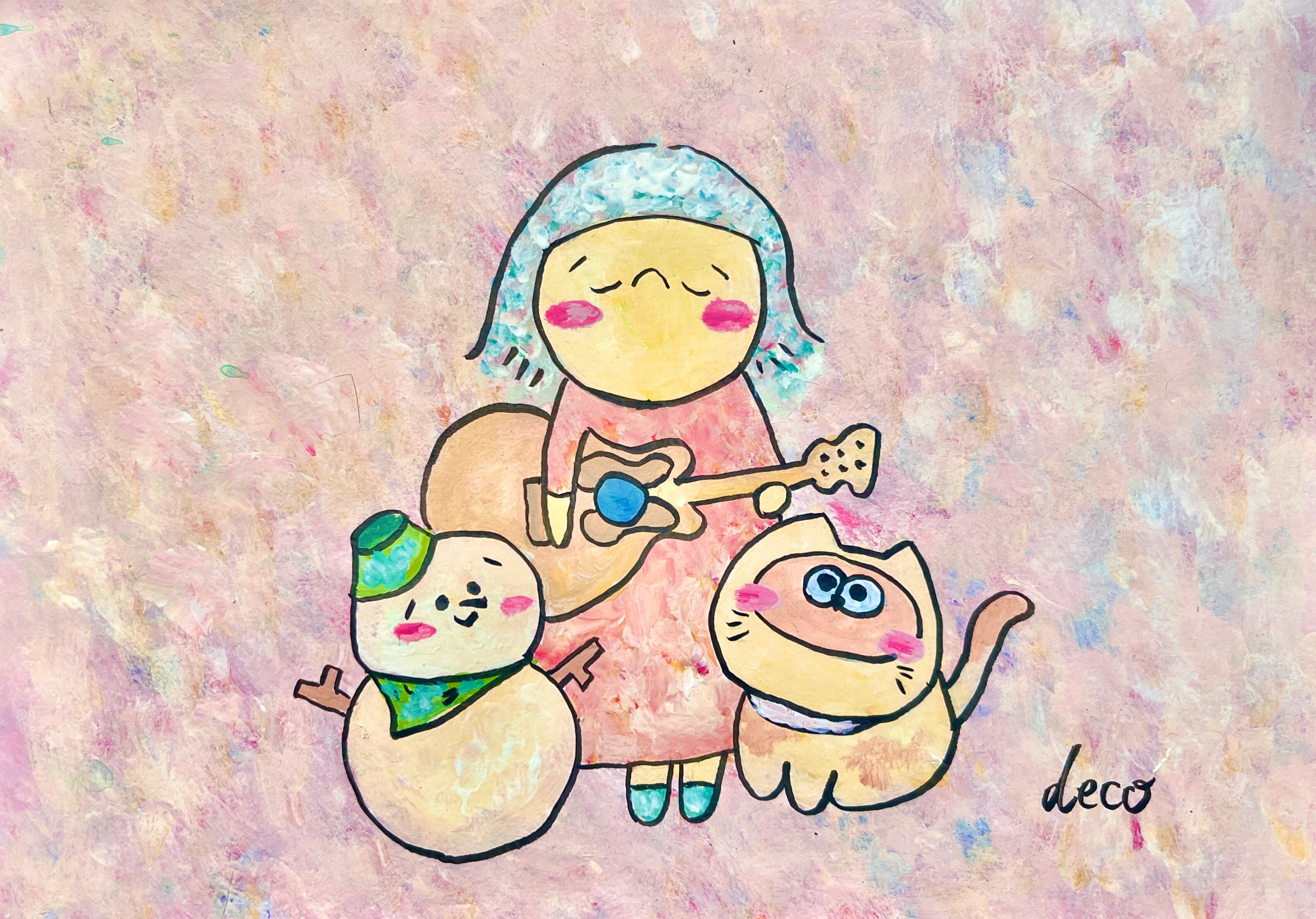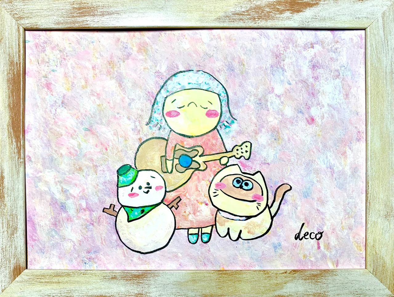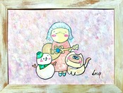 【レプリカ】【2L版】【絵】「桃色世界のタヌーと雪だるまとでこ」