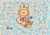 【レプリカ】【はがきサイズ】【絵】「水色世界タヌーとうさぎでこ」