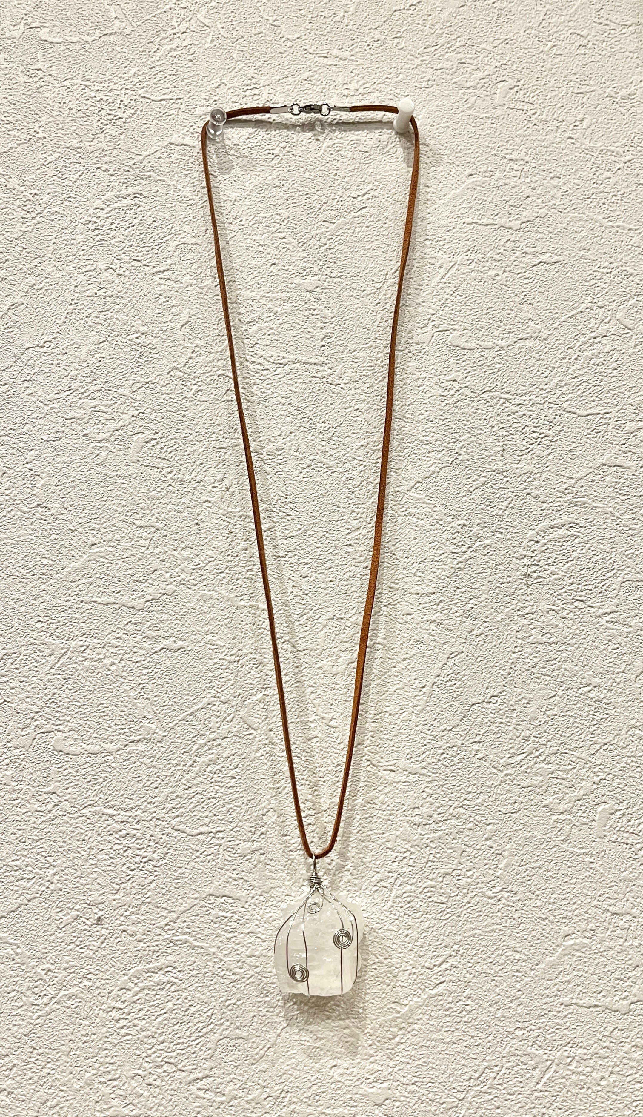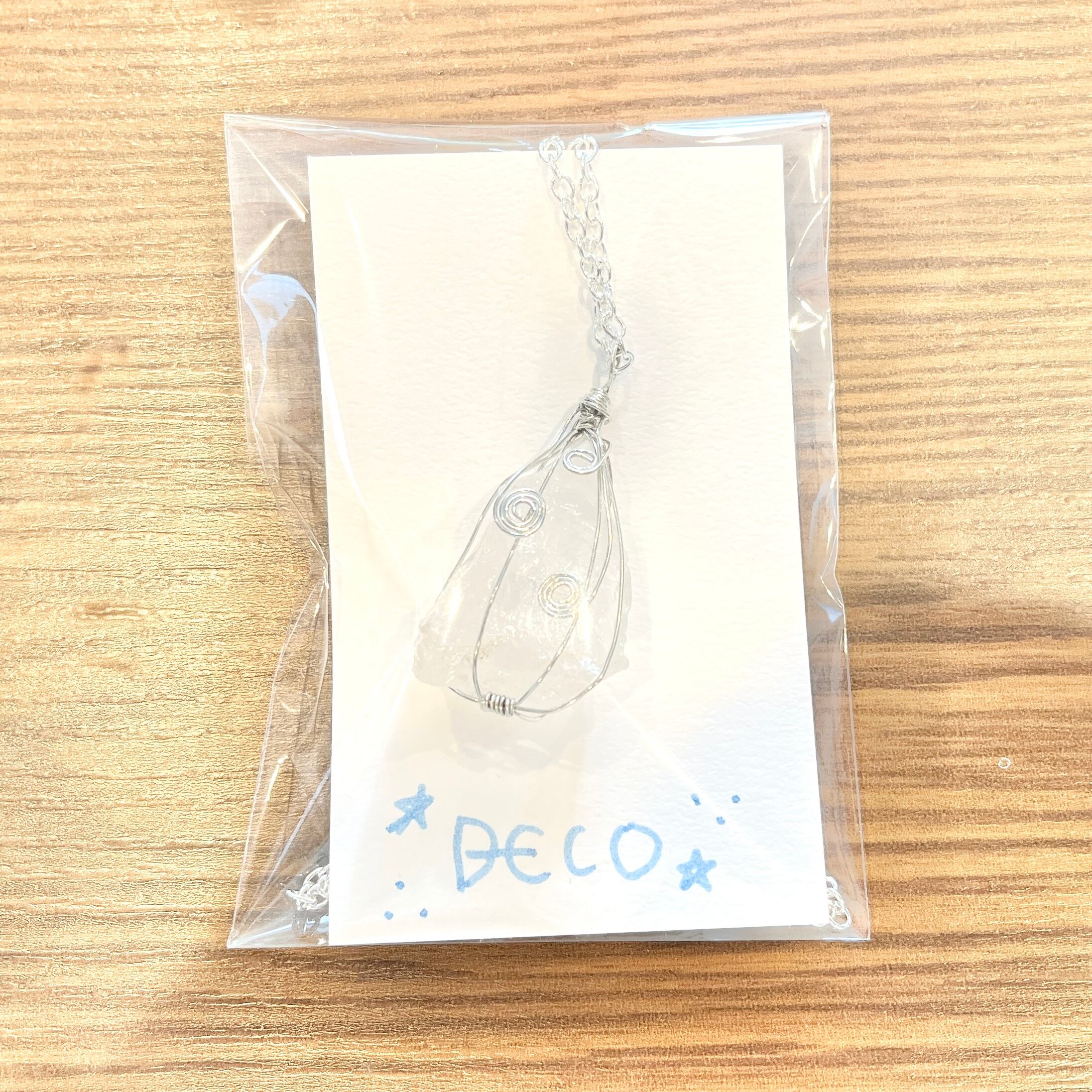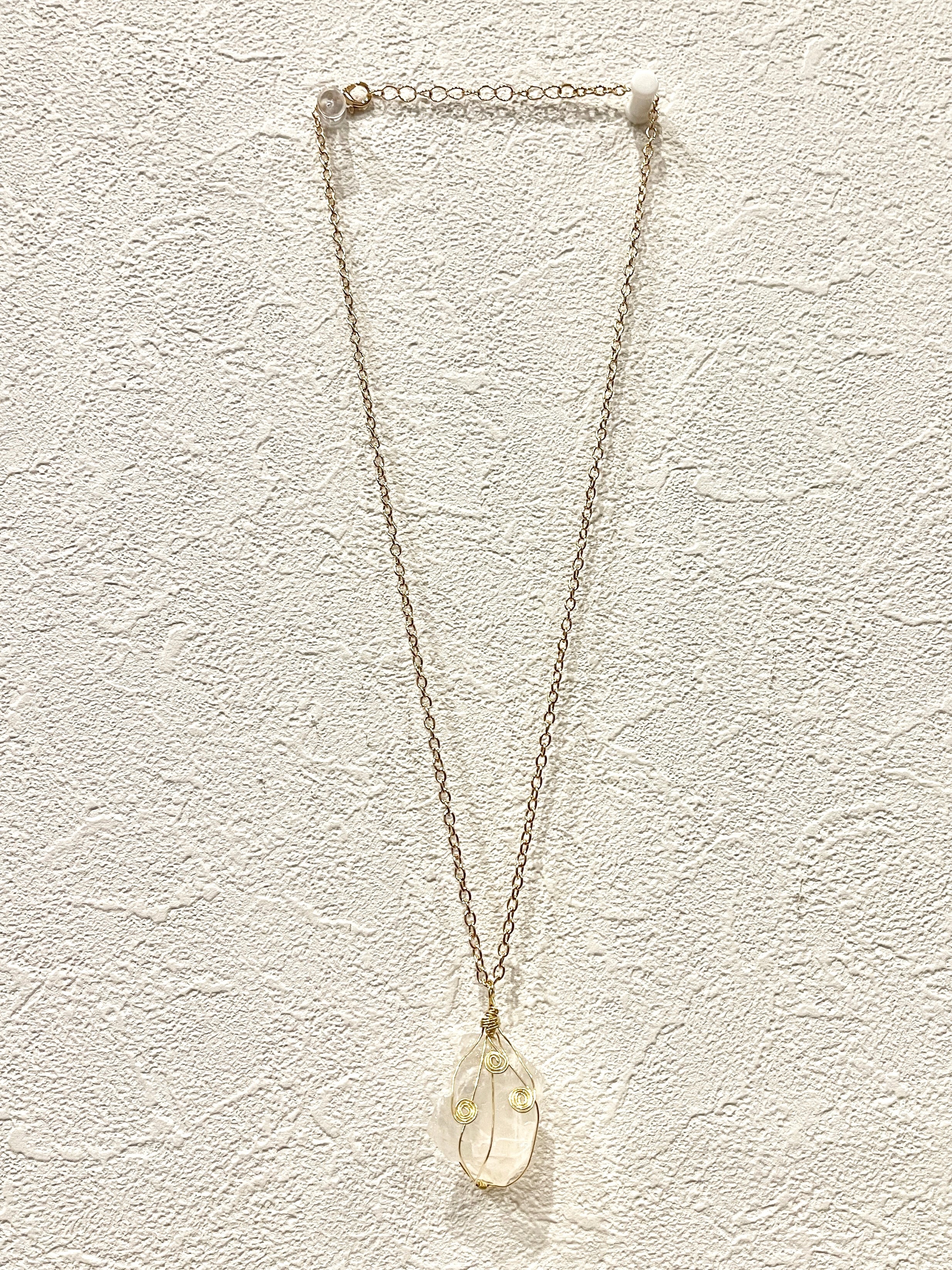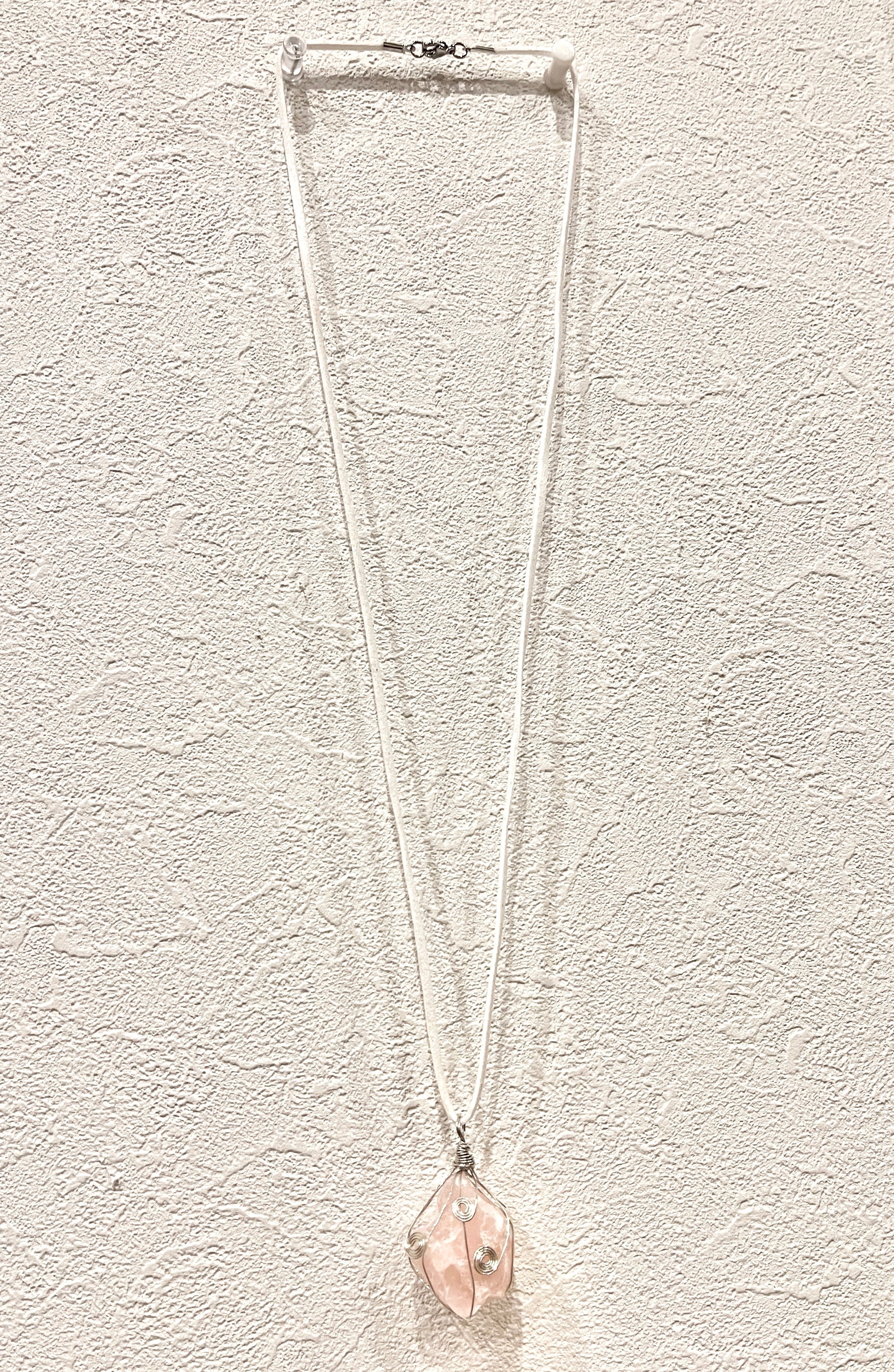 ワイヤーラッピングアレンジをした、パワーストーン(クリスタル&ローズクォーツ)のハンドメイドネックレスです。