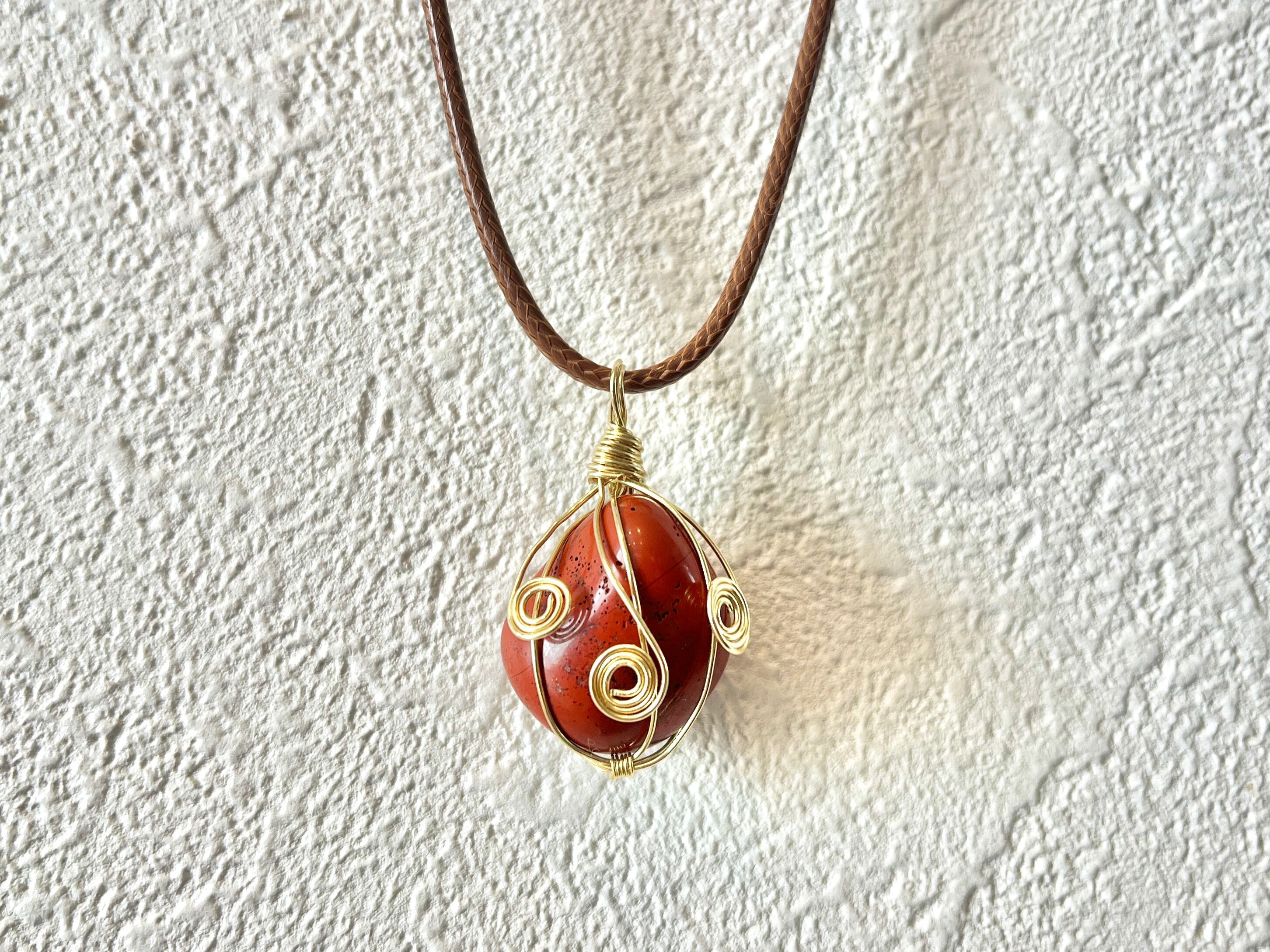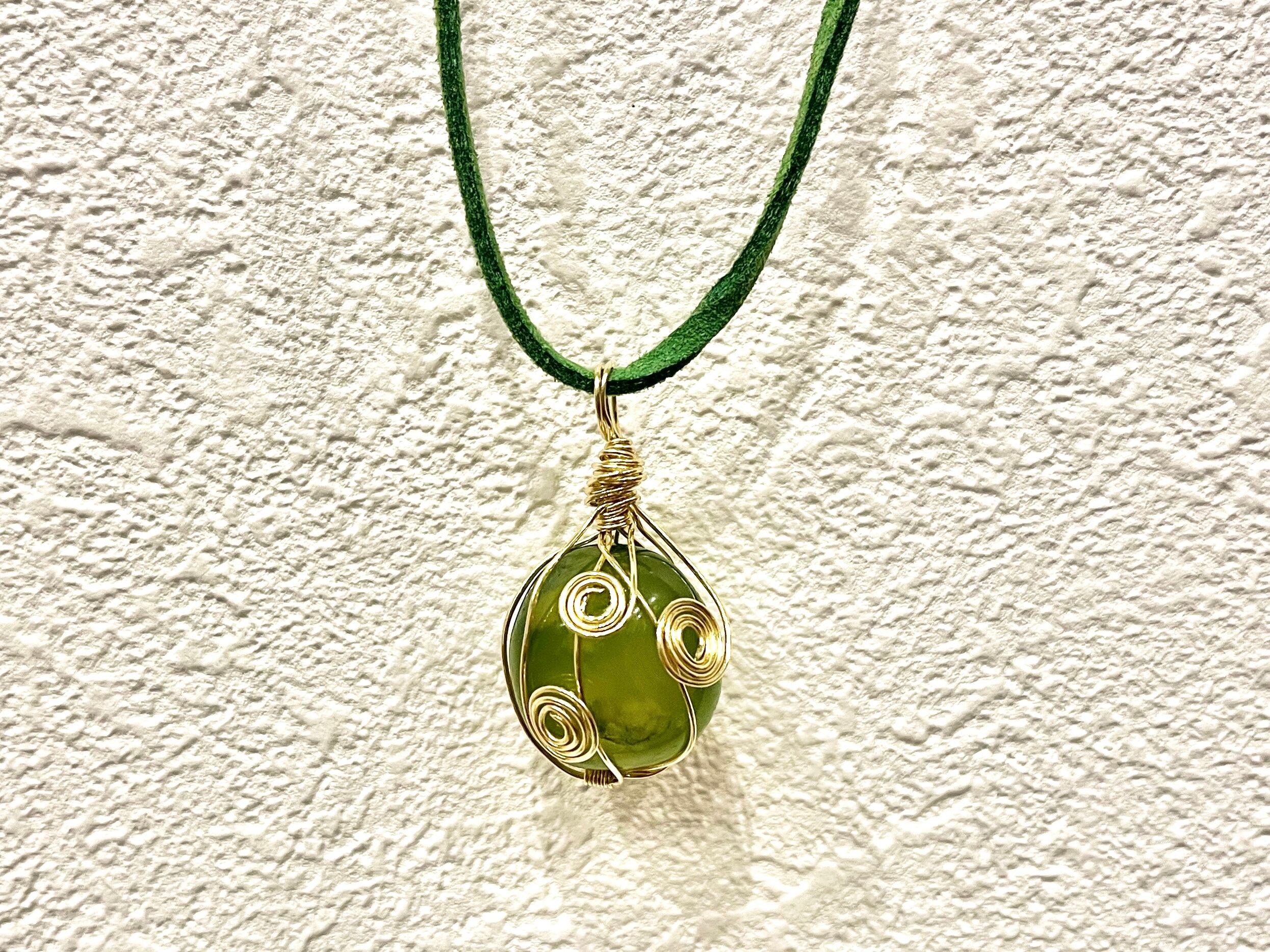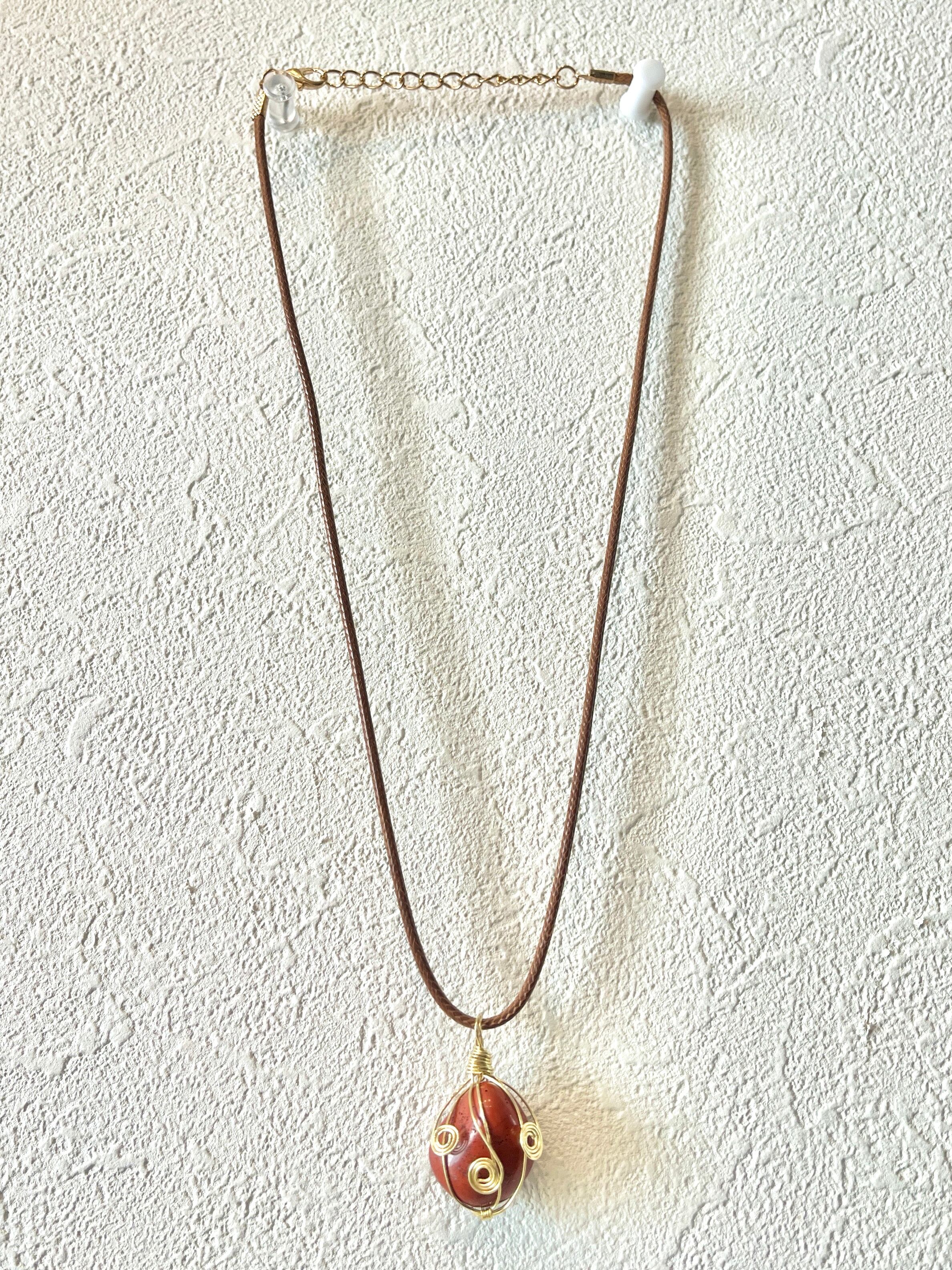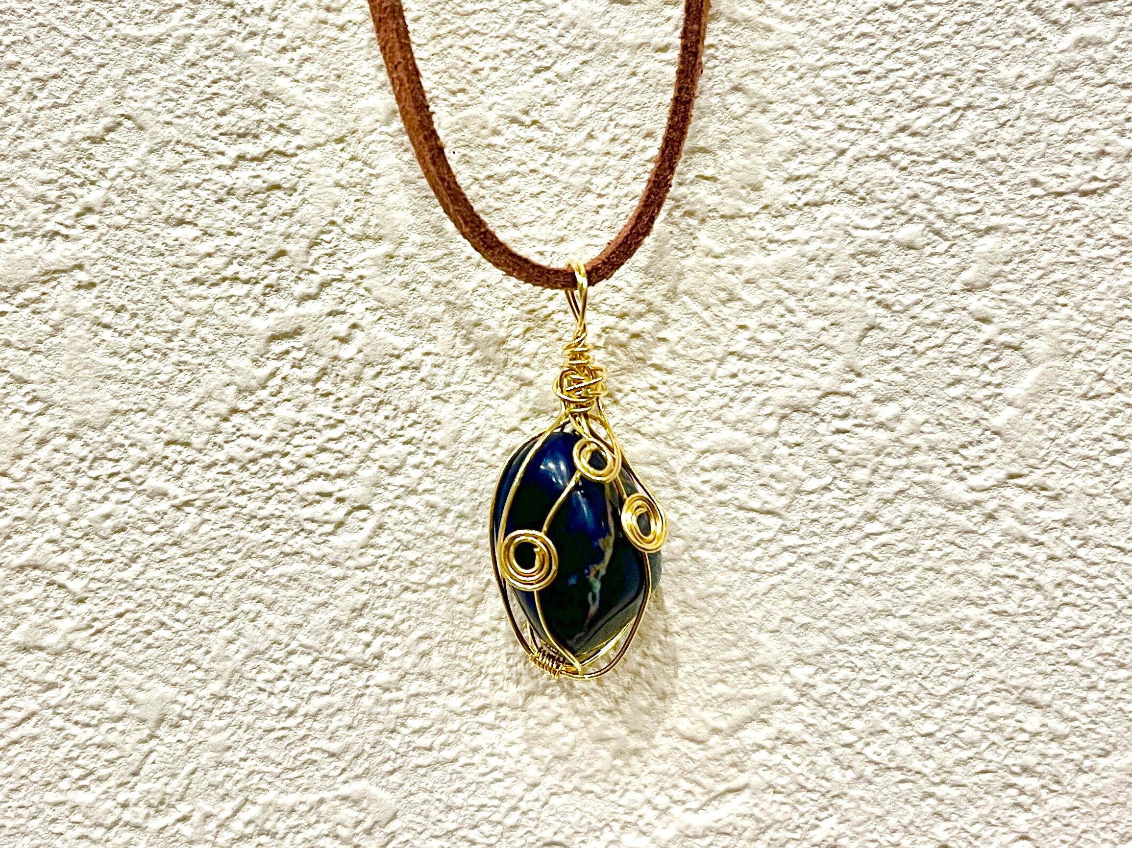 ワイヤーラッピングアレンジをした、パワーストーンのハンドメイドネックレスです。