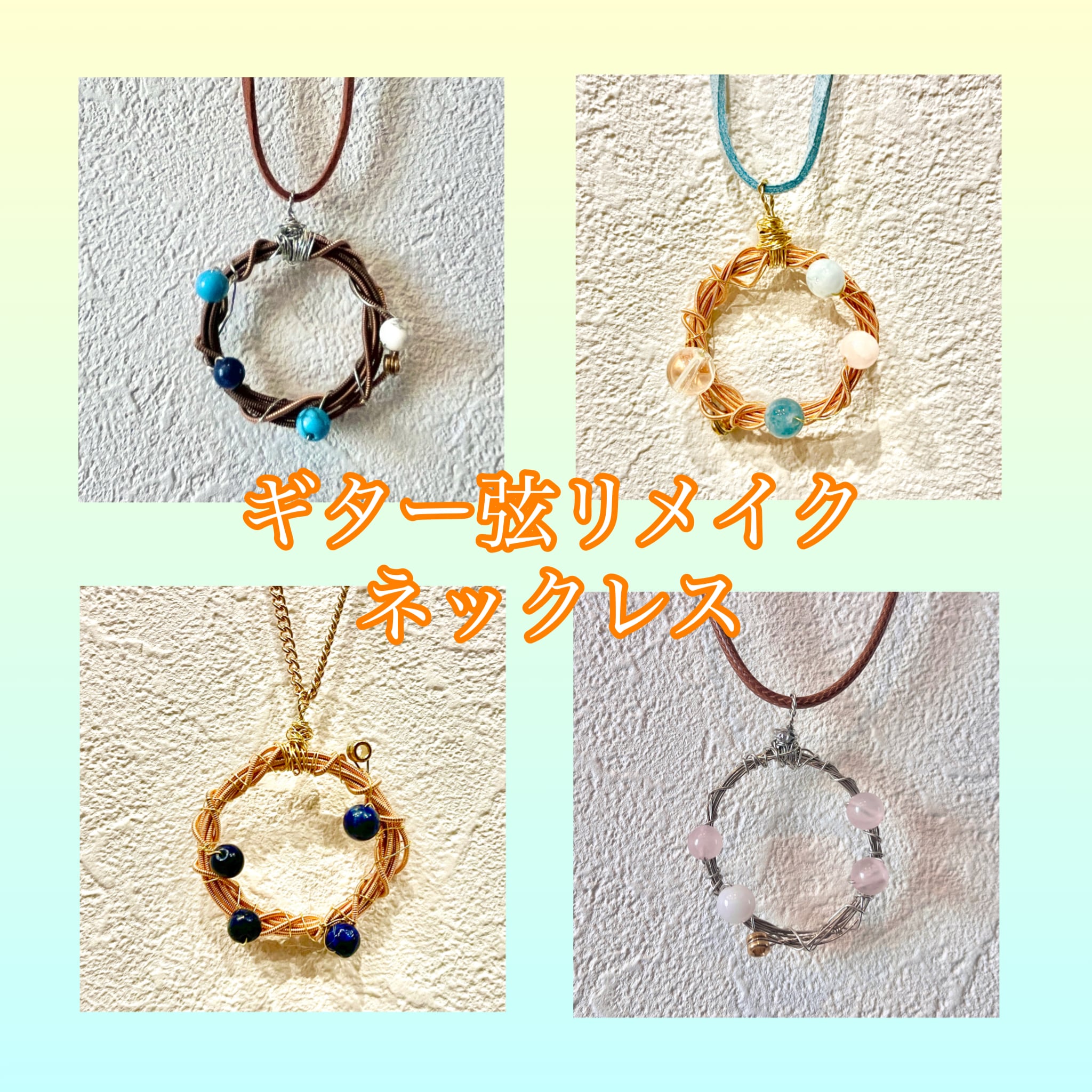 ギター弦をリメイクした、パワーストーン付きのハンドメイドネックレスです。